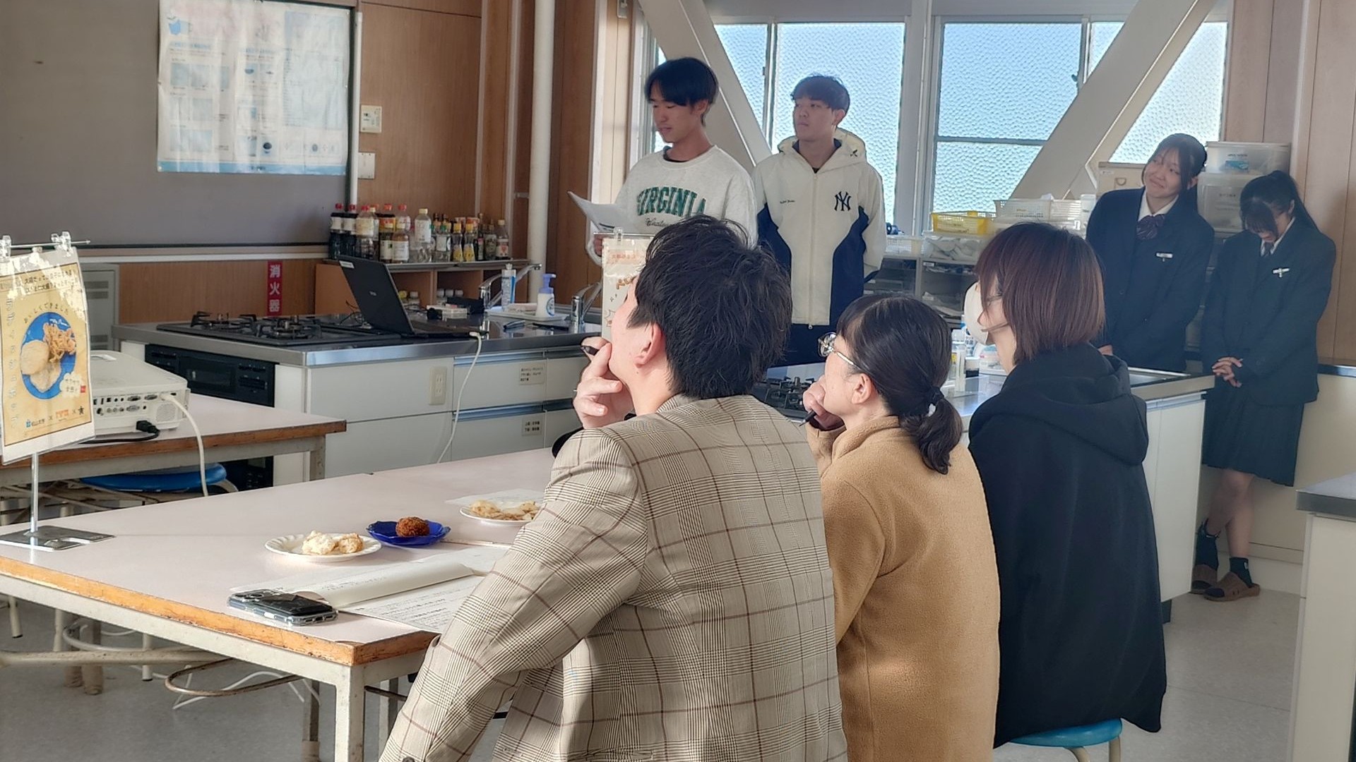 からき天ぷら店様にも終始熱心に耳を傾けていただき、温かいご助言や励ましの言葉を頂戴しました。高校生・大学生とともに今回の発表会を通じて、試作と発表までの一連の流れの中で、企画力や表現力の大切さを学ぶことができたと思います。また、事業者の方から直接ご意見をいただけたことで、実際の販売や商品開発をより身近に感じる貴重な経験にもなりました。