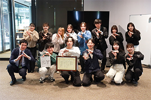 2025年4月9日(水曜日)に、本学樋又キャンパス1階 社会連携課多目的室にて、愛南マダイ応援隊が「ふるさとCM大賞えひめ」の審査員特別賞を受賞し、主催者である愛媛朝日テレビより賞状が手渡されました。